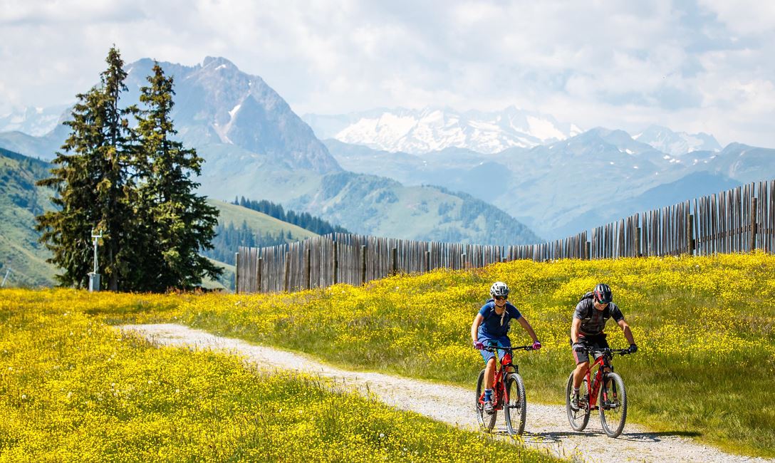 This black route starts in the district of Klausen near Kirchberg i.T. Initially on tarmac, later on a forest path, the route runs uphill through meadows and forest in several serpentines to the Fleckalm inn. Here the forest thins out and the tour continues uphill through pastureland to the Ehrenbachhöhe. Once at the top, bikers can refresh themselves at the reservoir and several huts invite you to linger. To get back to the starting point, experienced bikers can take the descent via the black Fleckalm trail (MTB 293) or return via the same route. Alternative routes to get back to Kitzbühel are the black Hahnenkamm route (MTB 232) or the easy Hahnenkamm bike trail (MTB 2004).