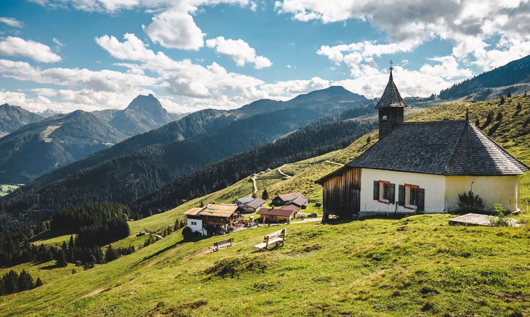 First we walk along the Brixenbach stream on the tarmac road to the Reiterbrücke bridge. Between the garage and the bridge we follow the hiking trail, also known as the Way of the Cross, to the Brixenbachalm and on to the Wiegalm. From there, turn left along the hiking trail to the summit of the Gaisberg. This is where the impressive ridge hike over the Gaisberg begins. The descent is at the end of the ridge to the Bärstättalm (from here you can also take the hiking trail towards Kirchberg to the Gaisberg lift) and back to the Kobingerhütte, Harlaßangerkapelle and Wiegalm back to the starting point.