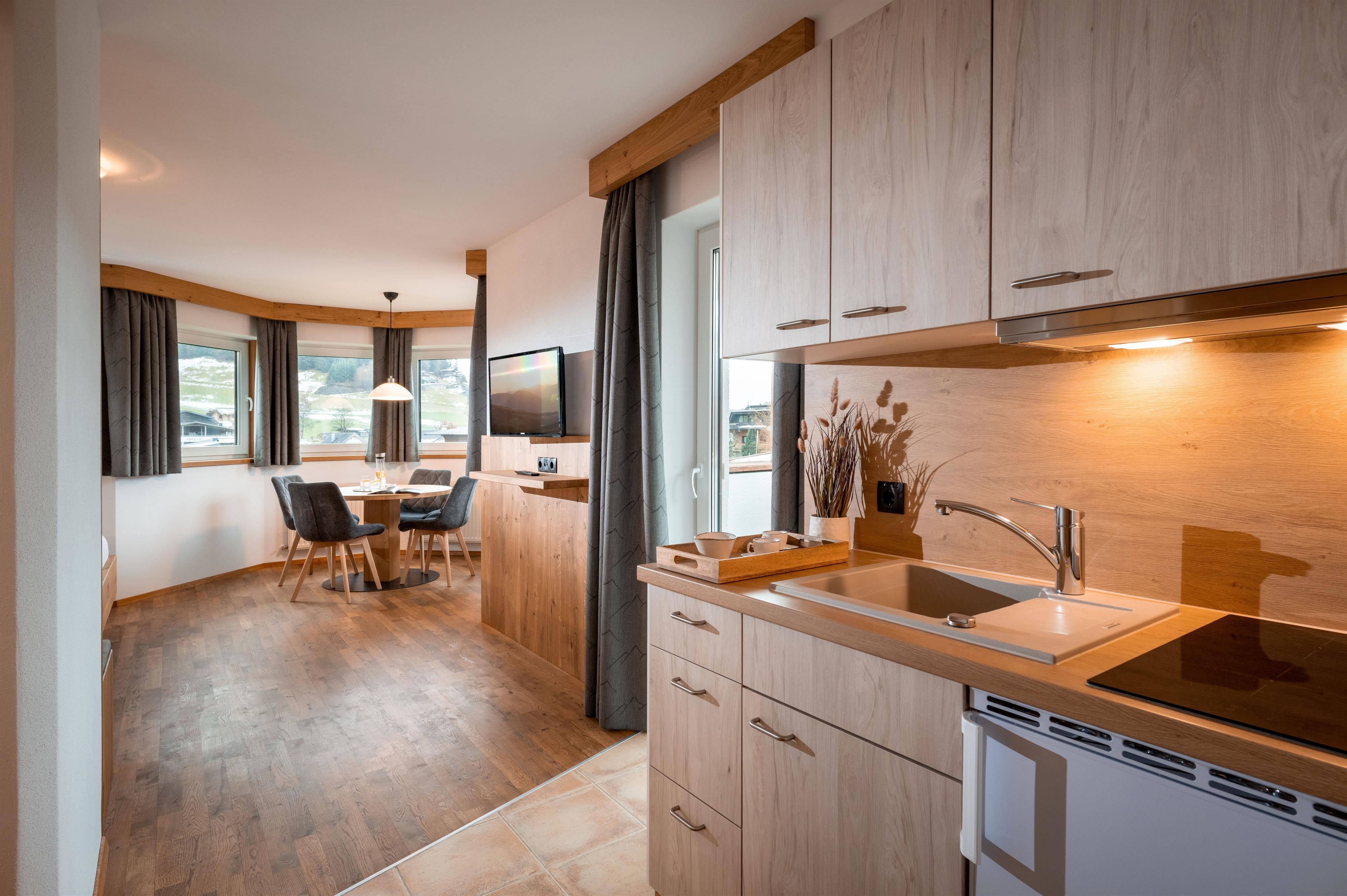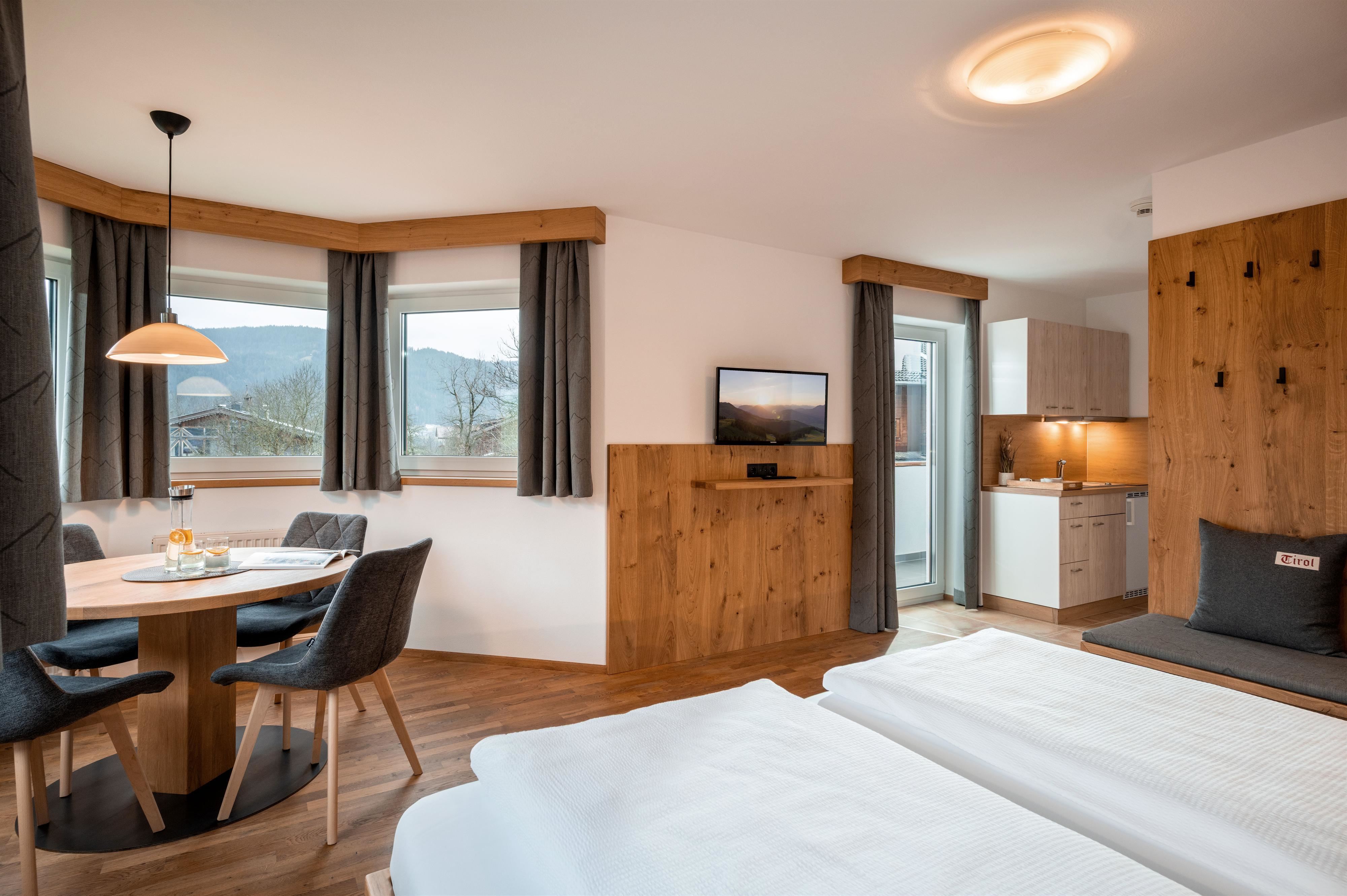 Our cozy apartments offer you not only comfort but also a beautiful view of the imposing mountain scenery of the Kitzbühel Alps.