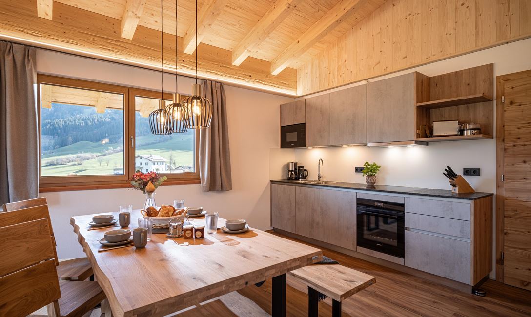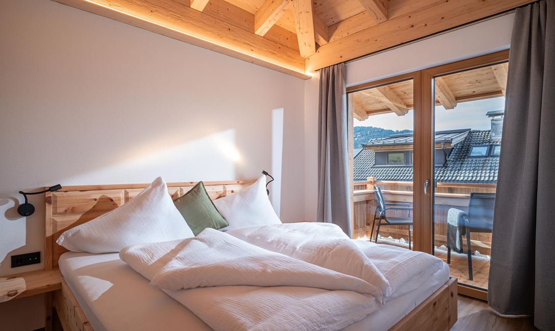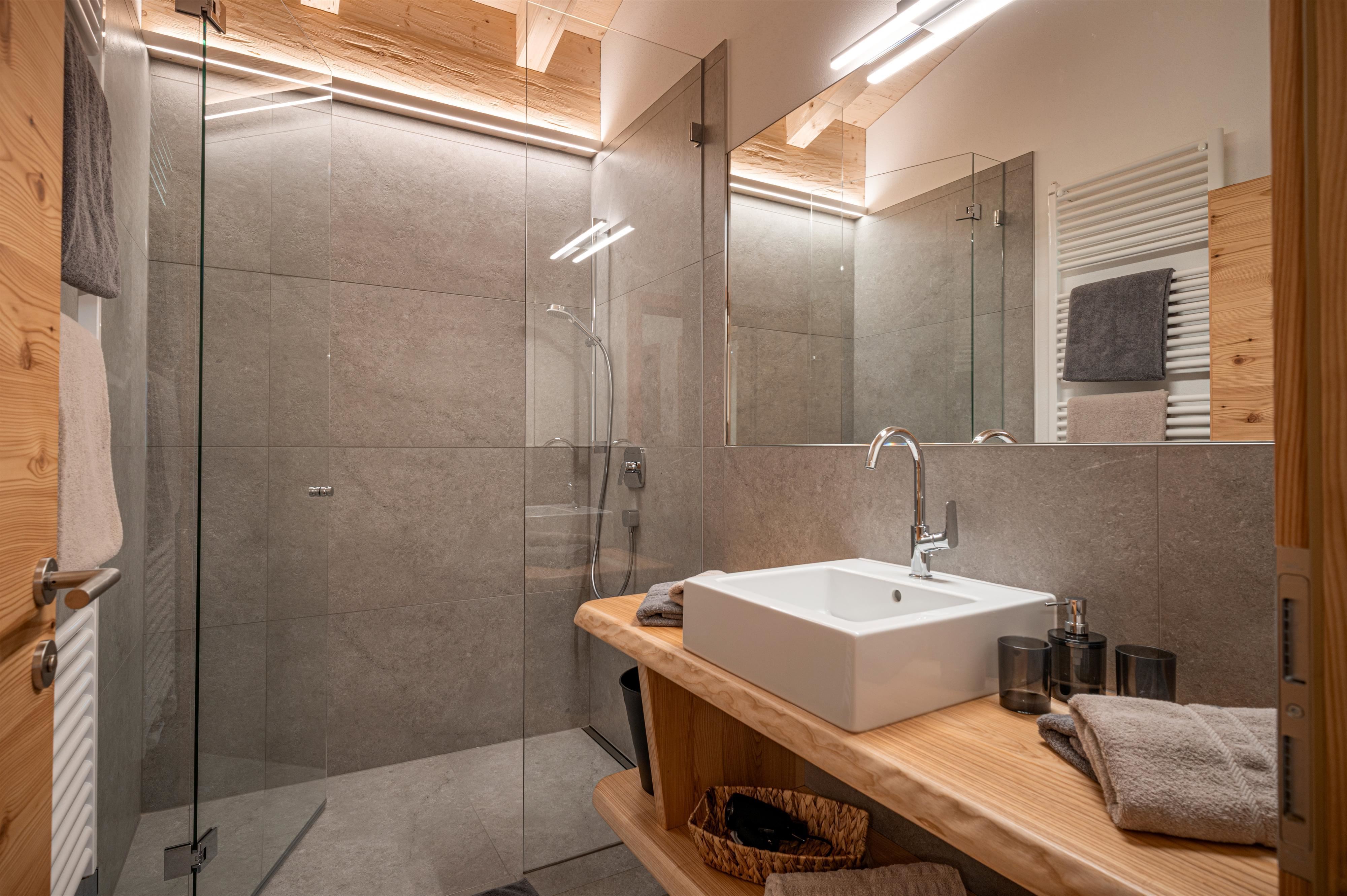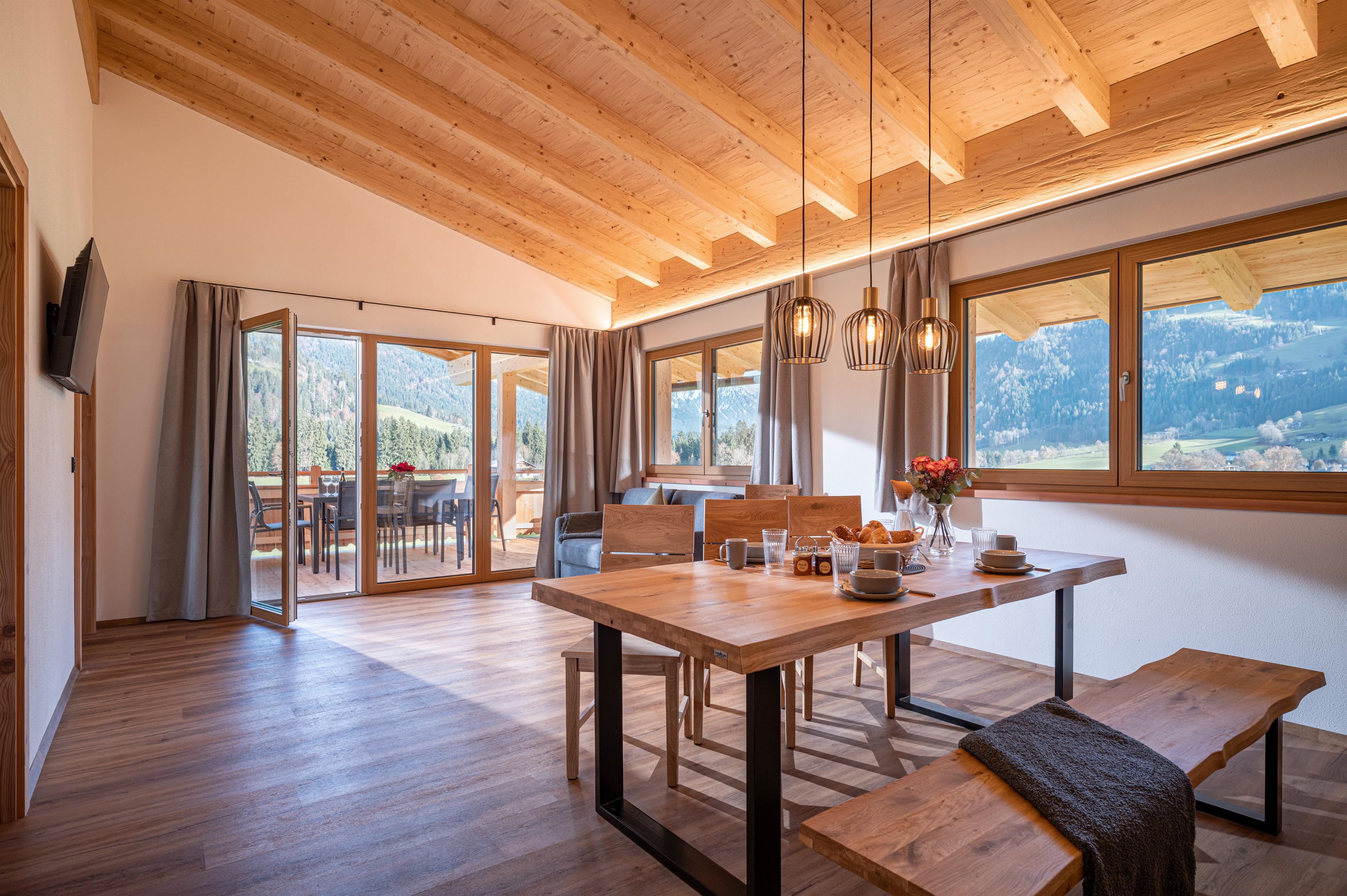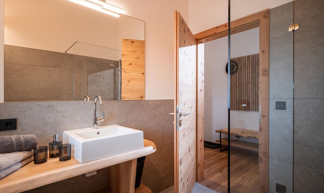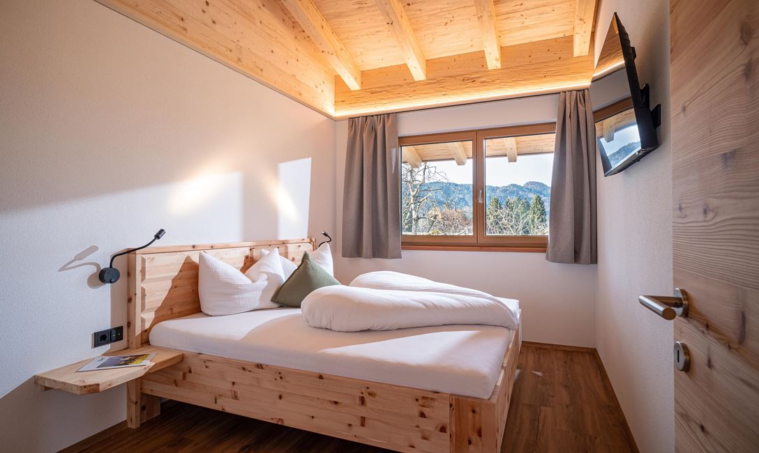 The Wilder Kaiser apartment features 2 separate bedrooms, each with a double bed, and a pull-out sofa bed for 2 people in the living room. Additionally, you have access to a bathroom with a shower and a separate toilet.