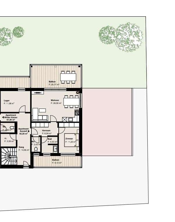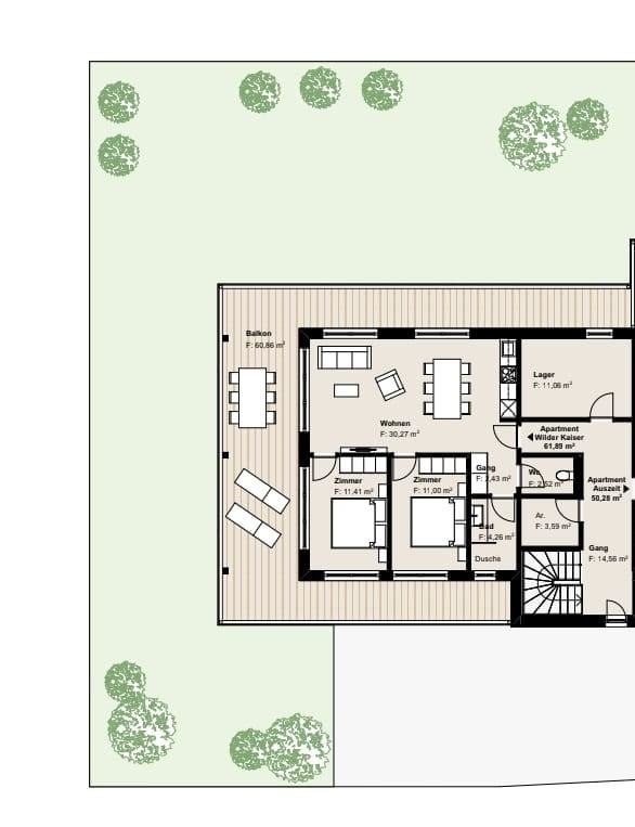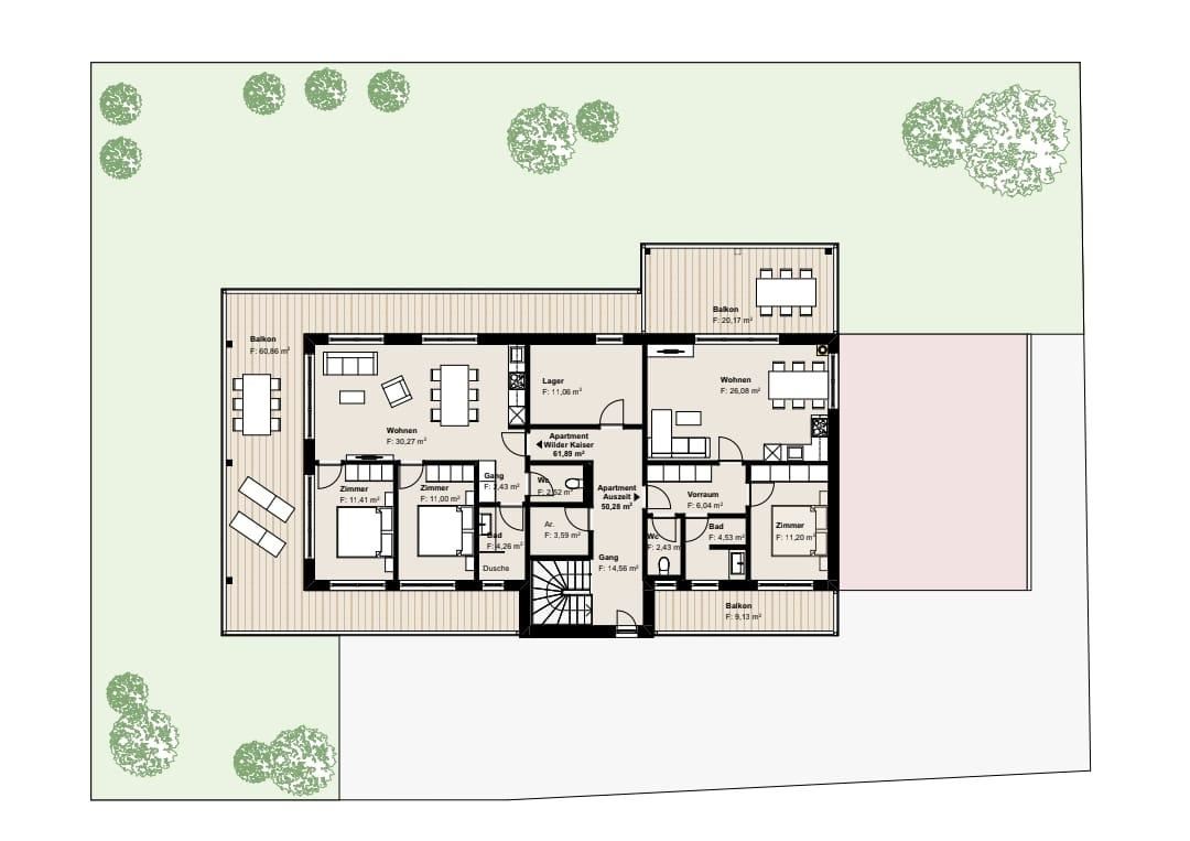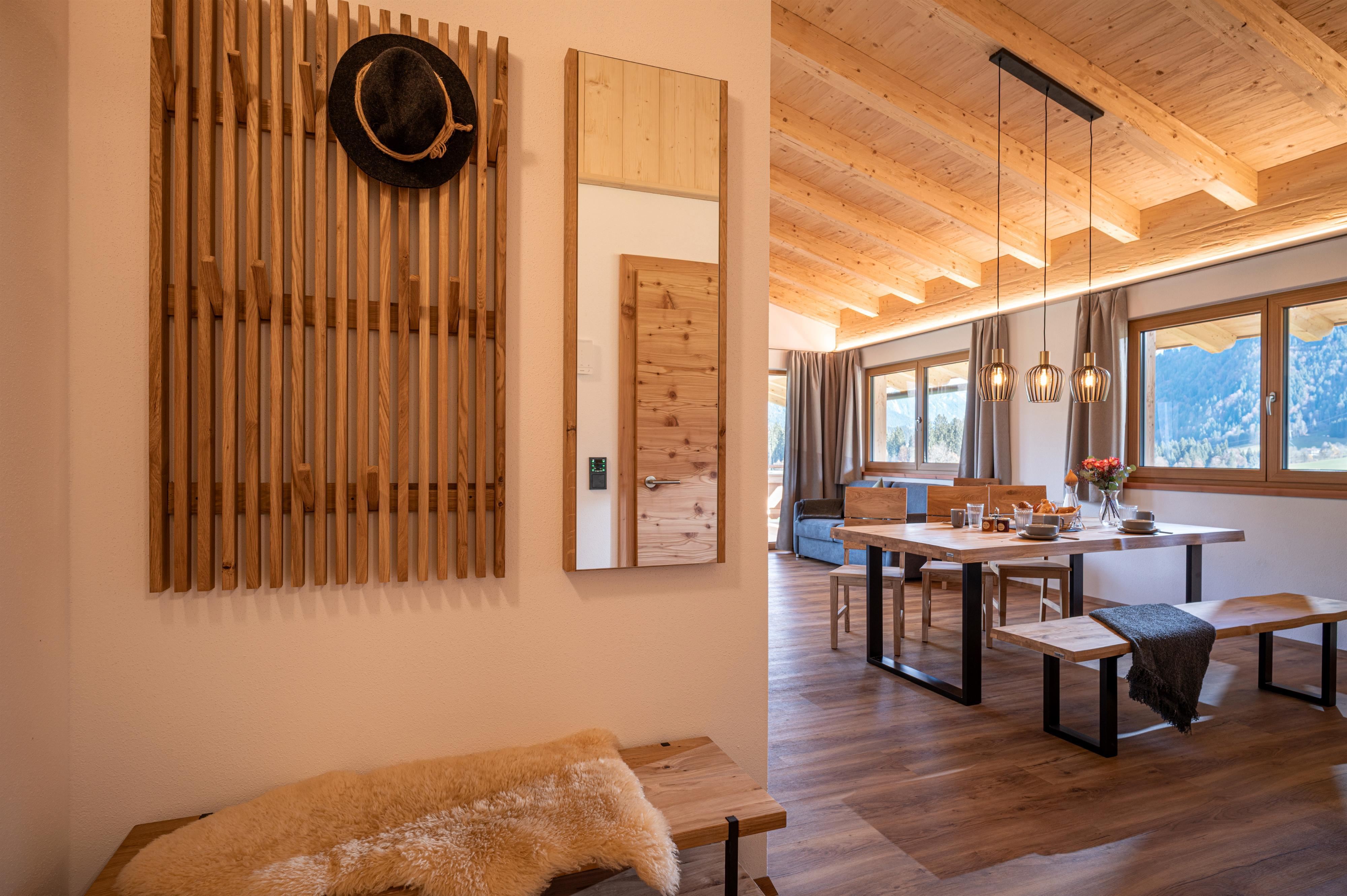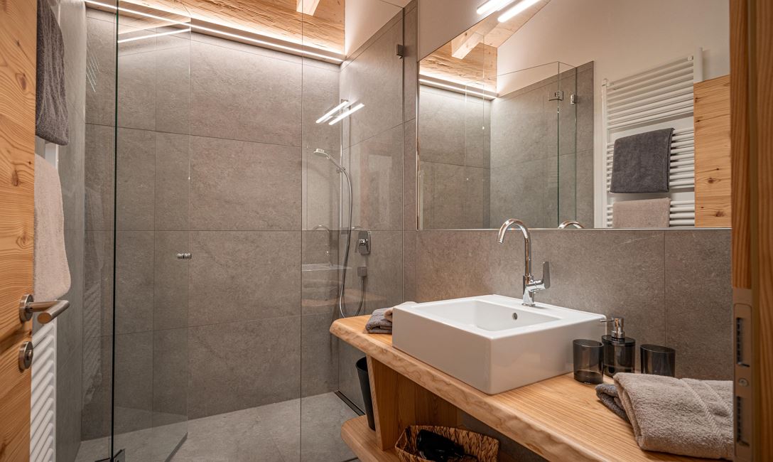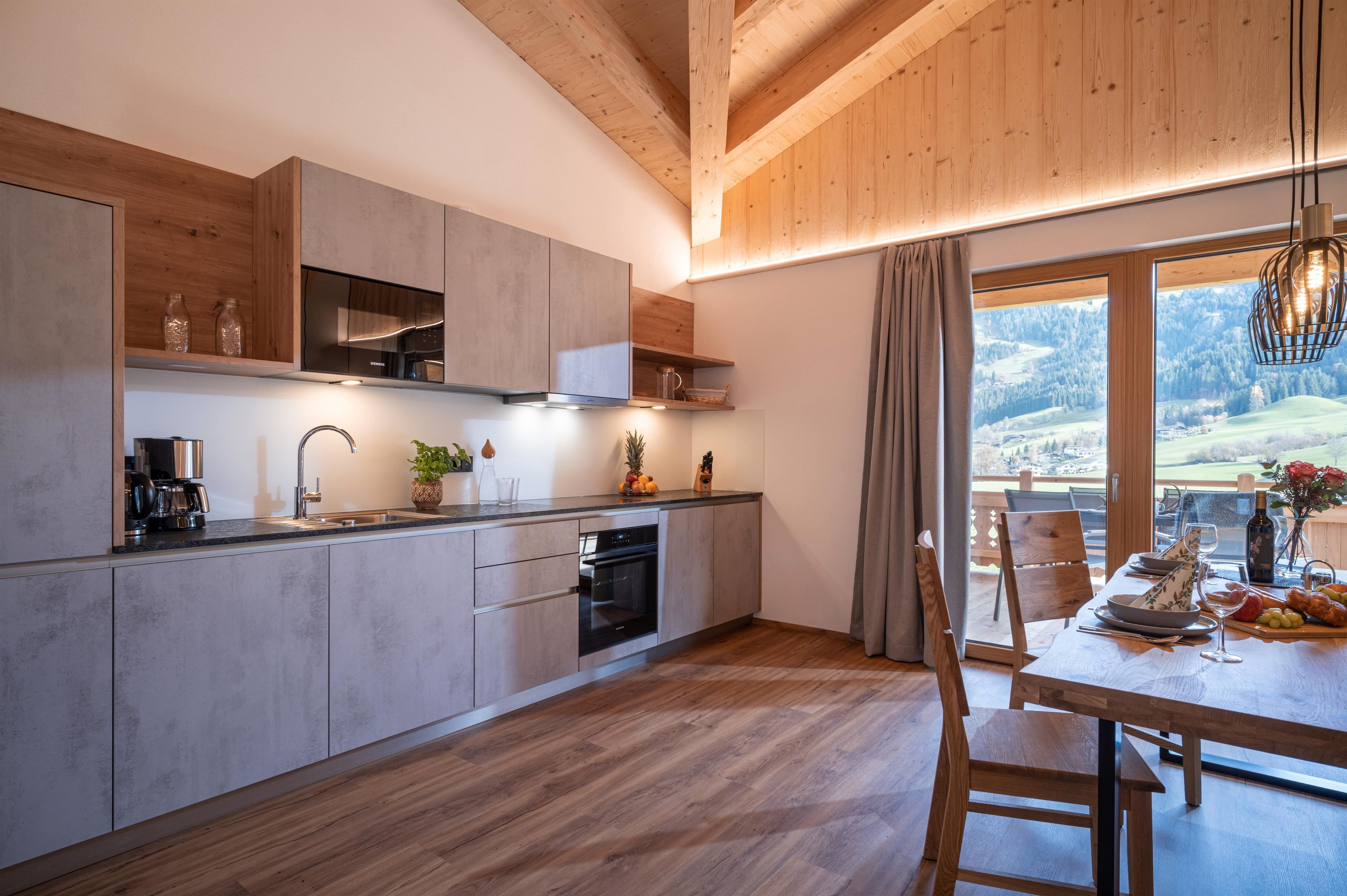 The Wilder Kaiser apartment features 2 separate bedrooms, each with a double bed, and a pull-out sofa bed for 2 people in the living room. Additionally, you have access to a bathroom with a shower and a separate toilet.