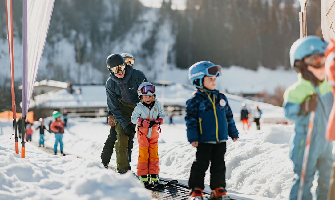 Directly in Hopfgarten, in close proximity to the mountain lift, beginners, children, and families will find an ideal ski practice area. Two conveyor belts, the Magic Carpets Bodenschmied and Högerfeld, effortlessly bring snow enthusiasts up the slopes. The gentle slopes offer optimal conditions to gain first experiences on skis.