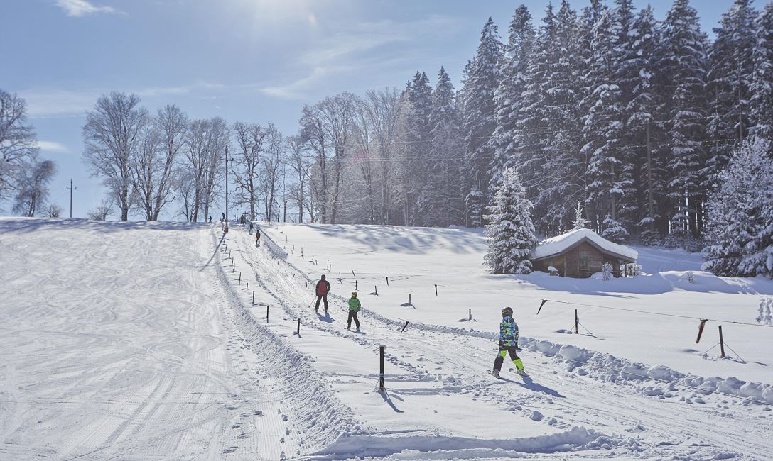 There is also a small ski area with a practice lift on the Sonnenplateau Angerberg/Mariastein. With wooden snowmen at the entrance and exit, as well as a new facade for the lift station, the Hohe Salve region has consistently invested, allowing the small but exquisite Angerberg ski area to shine. The Pfaringlift is ideal for beginners who want to take their first turns. Children can also enjoy tobogganing, bobsledding, or sliding down the snowy slope on a snow disc.