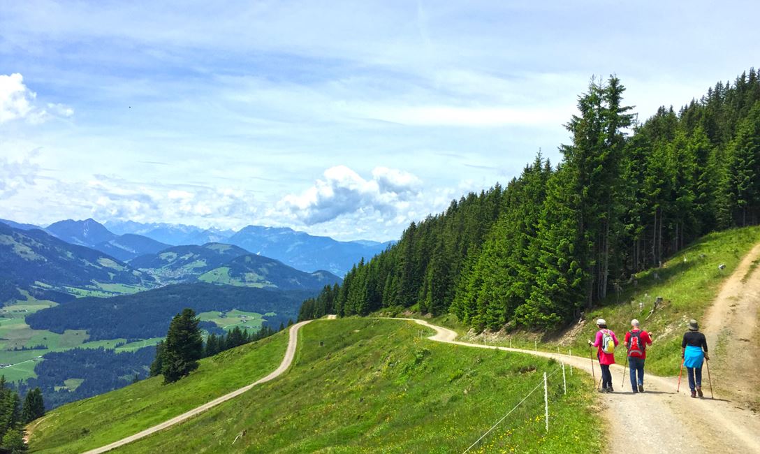 The tour starts at the information office in Hopfgarten and initially leads along the Sunnseitrunde. After about 45 minutes you reach the Sunnseithütte. From there, follow the signs to the middle station (trail no. 65a).