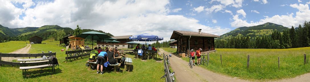 The starting point for this tour is the Wasserfeld car park P3. From there, follow signpost no. 227 in the direction of Kelchsau. After about 650 metres you leave the road and turn left over a bridge into the Elsbethen settlement. Cross the village and follow the signs (no. 227) to the Gruberberg junction. At the crossroads, turn left in the direction of Westendorf (no. 89) and follow the road to the Haslau power station (Unterwindau). There you cycle along the Windauer Ache, past the Lendwirt inn, to the Käsealm Straubing (no. 6).