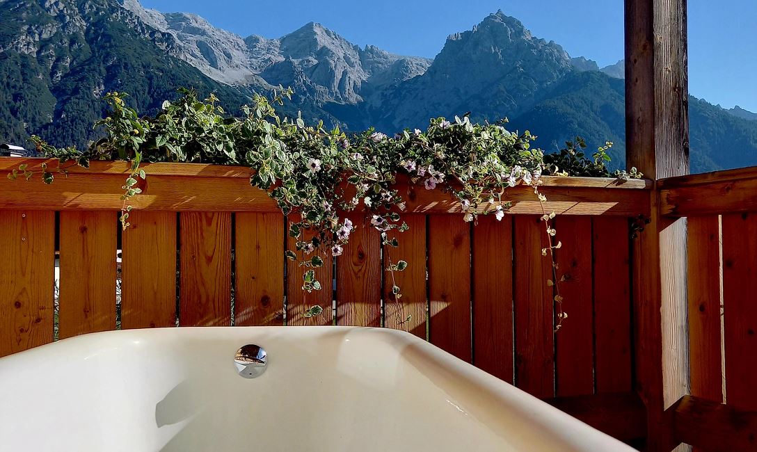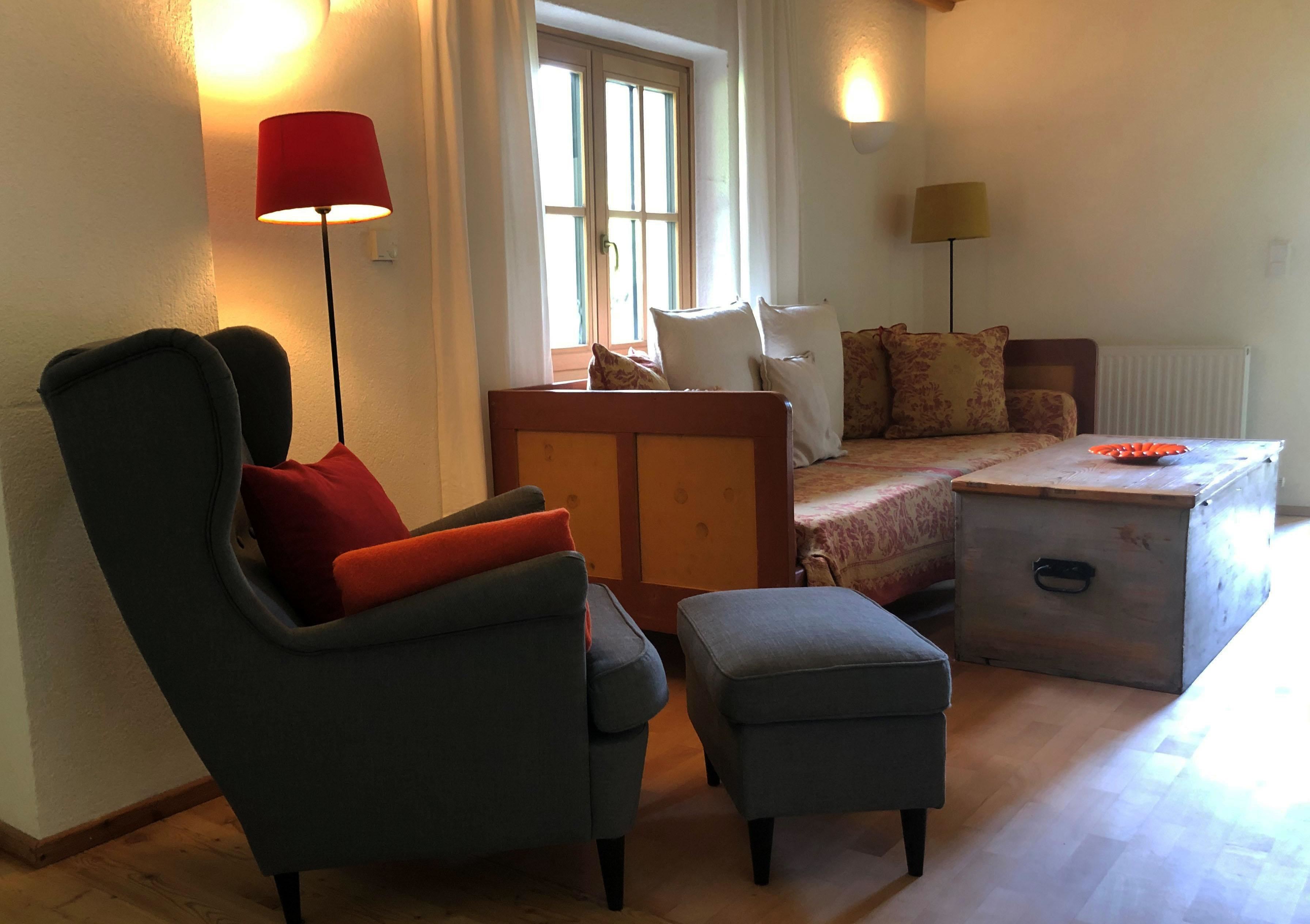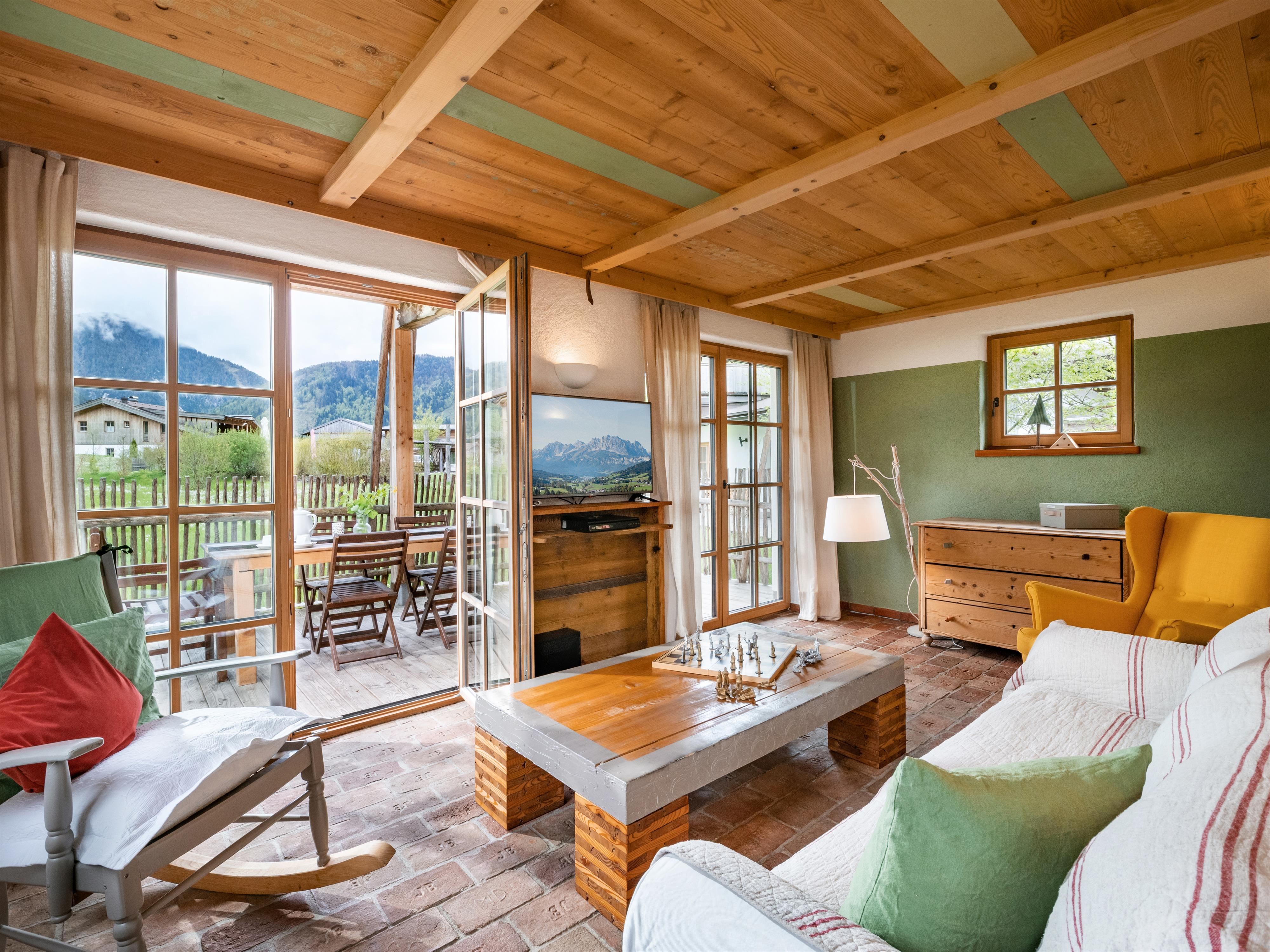 Holiday house with pleasant space of approx. 150 ms ² on three floors. Ground floor:living-room with couch and rocking chairs, SAT TV, DVD Player with sound system, big eating area and kitchen with dishwasher, oven, microwave, Nespresso machine.Storeroom with washer, toilet, small inner court and wood terrace On the first floor: two separated double rooms with shower in each case and toilet; big balcony with look at the Loferer Steinberge and the bathing area. On the 2nd floor: a family room with sleeping possibility for 4 persons, separated by bathroom with tub, shower and toilet; big balcony.