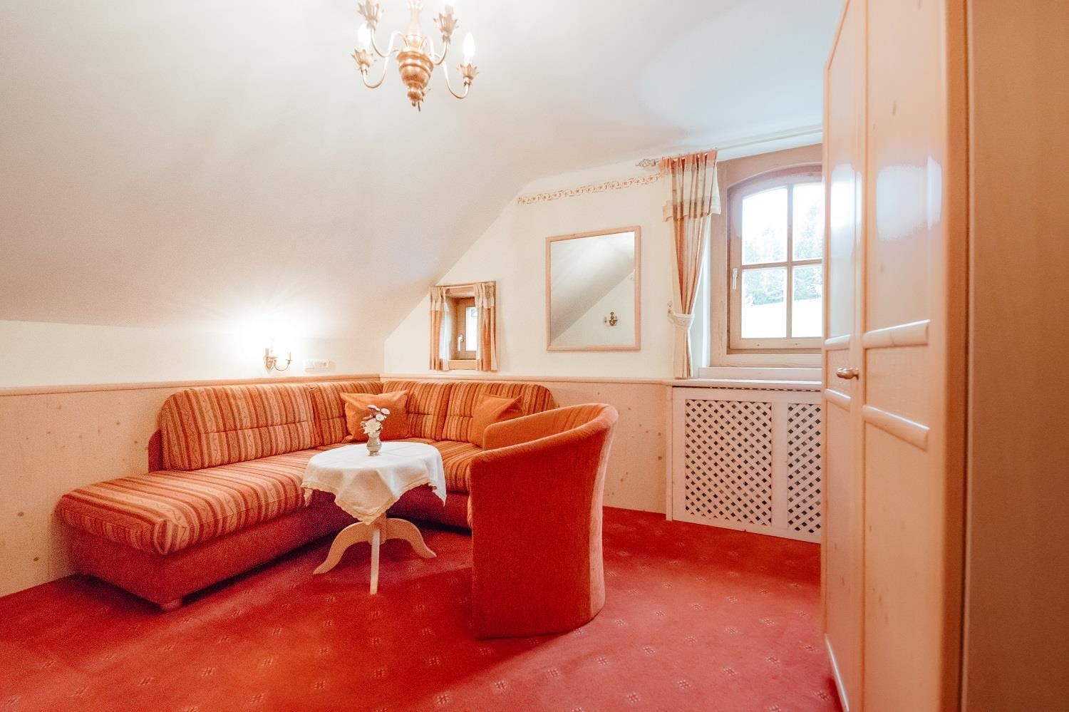 Comfortable rooms with 20 beds/10 rooms and 7 Appartements in a sunny and calm position named Walchau. The house is located directly at the skiing region and enables a huge choice of activities. The entry to the cross-country skiing slope can be found in front of our house. The family establishment with its location at the edge of a forrest is the ideal origin for several hikes and excursions. Families with children and dogs are as welcome as couples or Singles. The guests are provided with a lift, sauna, steam bath and infrared cabin. There is a ski room in the hotel to keep your boots and equippment safe and dry. The cosy hotel bar invite to spend homely evenings and we love to spoil our guests with a rich breakfast buffet. All our rooms are equipped with cable Television. Wireless Internet and parking spaces are available and for free.