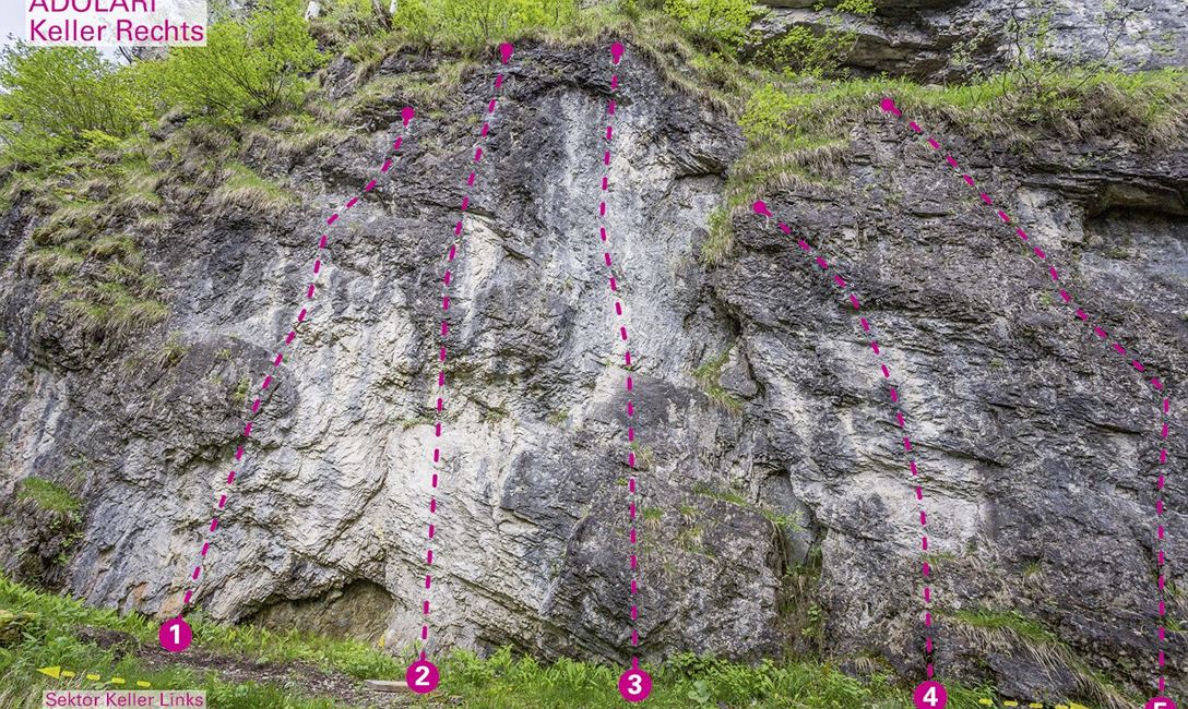 Kurze noch nicht abgekletterte Routen. Etwas gruselig aber recht interessant mit sparsamen Hakeneinsatz. Weite Runouts zum Umlenker!
