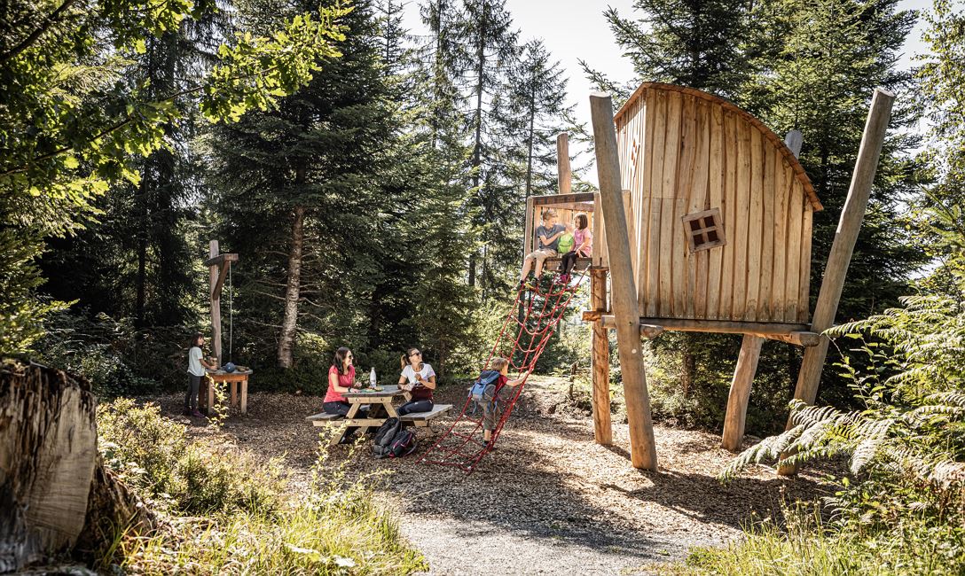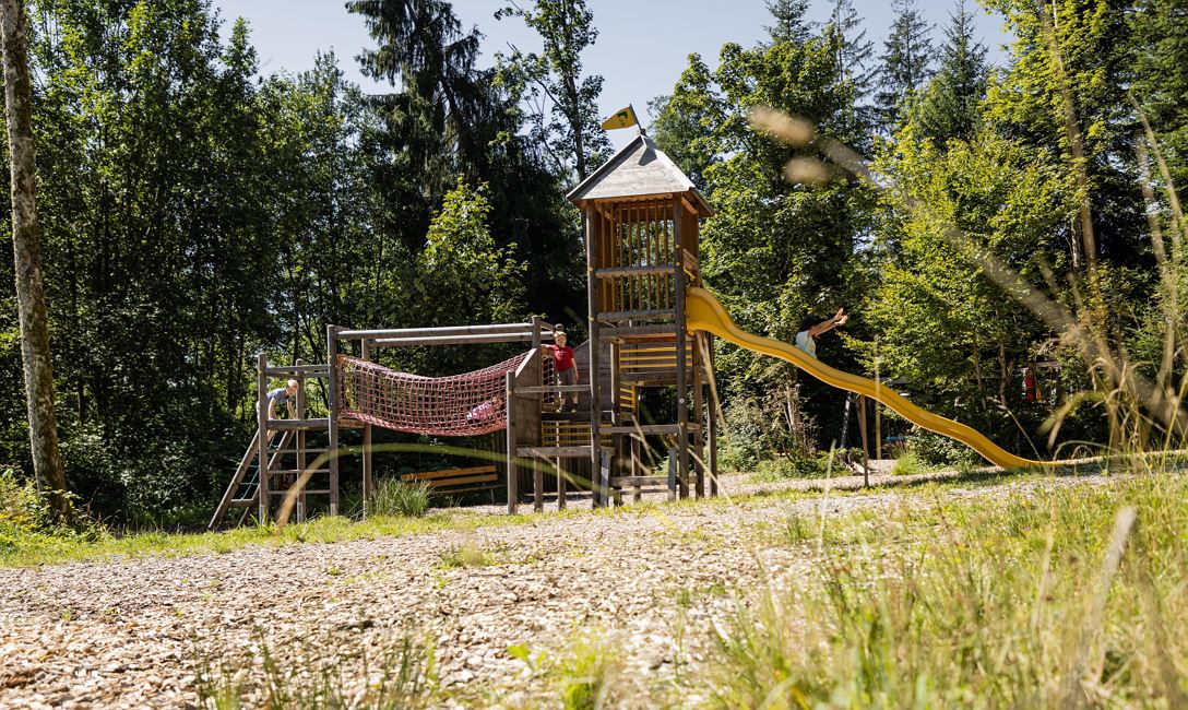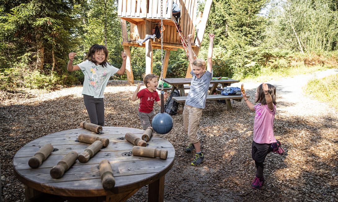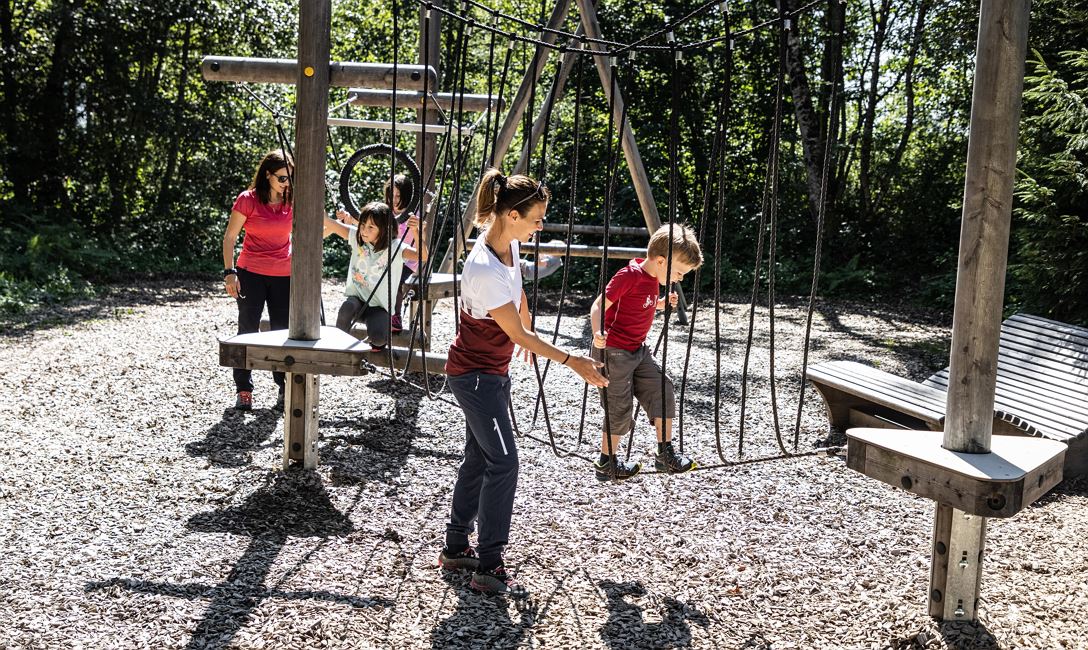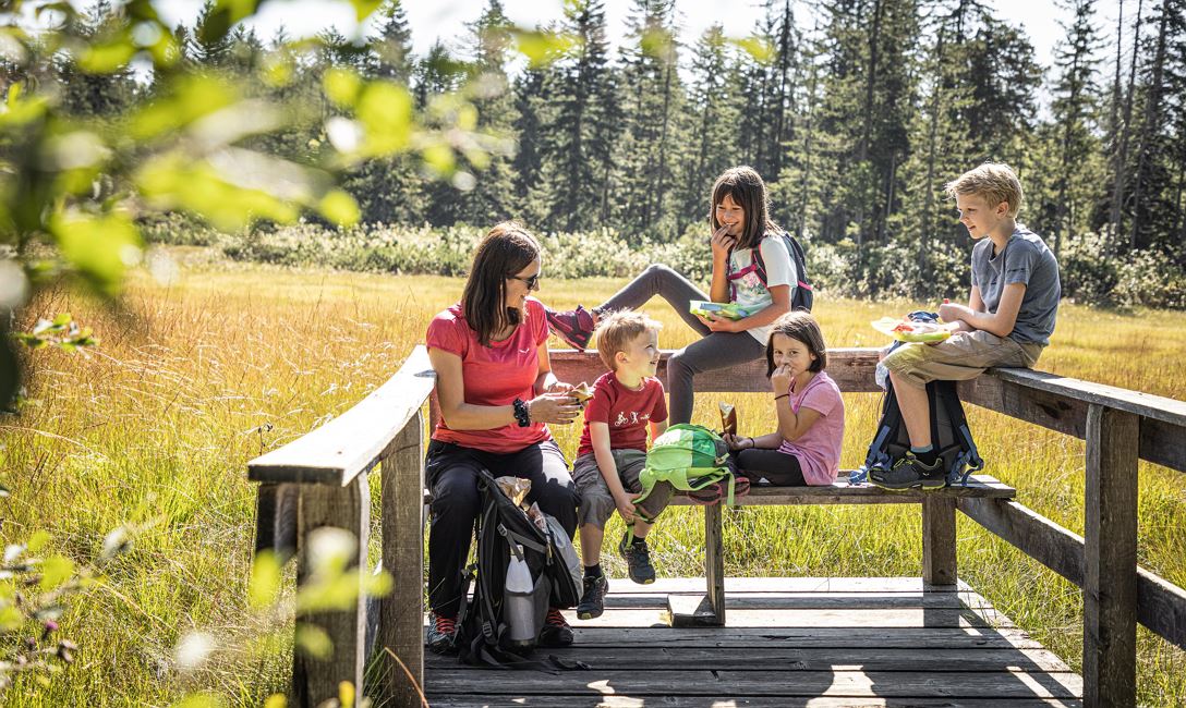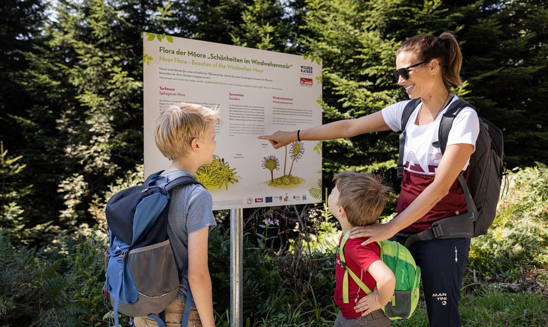 Sliding, climbing, swinging, digging in the sand, balancing ... you can do all that at the forest playground Moor & more between St. Johann in Tirol and Going. Our two adventure trails with Törfchen & Rocky, funny play stations & tricky puzzle questions also start from there. Along the paths you will also find information about the moor at the Kaisergebirge, as well as its plants and animals.