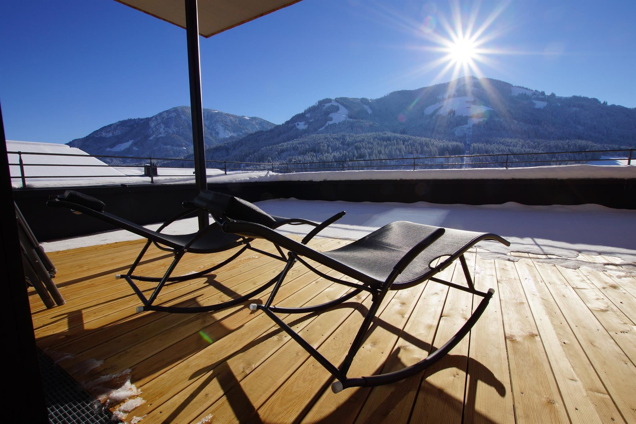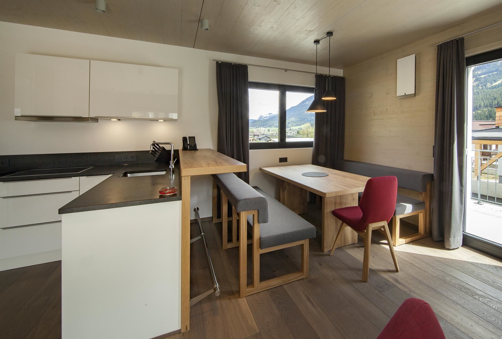 Penthouse in high-end basic design met natuurlijke, lichte materialen, alpiene flair en echte gezelligheid. Gratis highspeed wifi, eigen ski- en bikeberging in de kelder, privé parkeergarageplaats naar beschikbaarheid. Indien gewenst ontbijtservice.