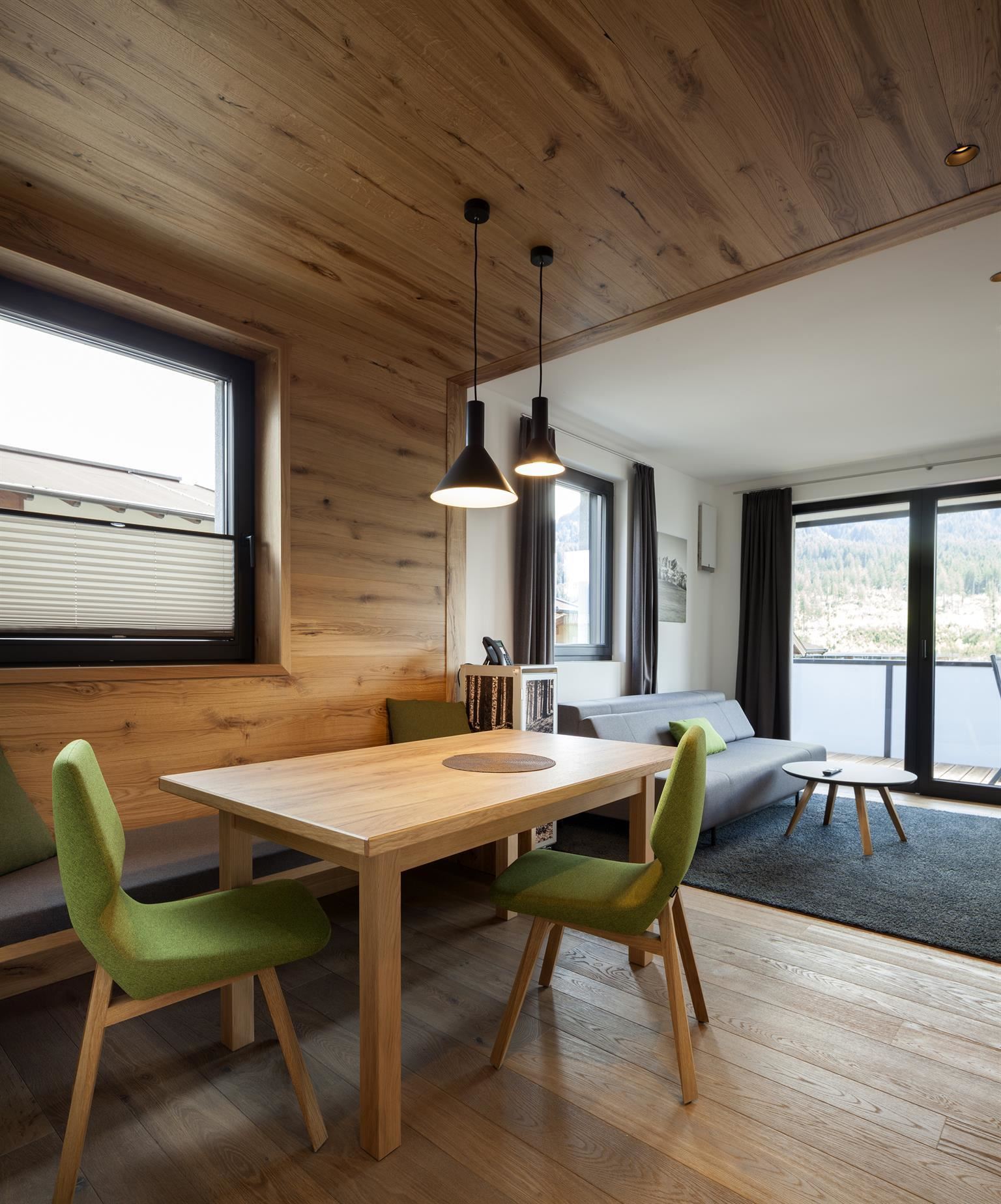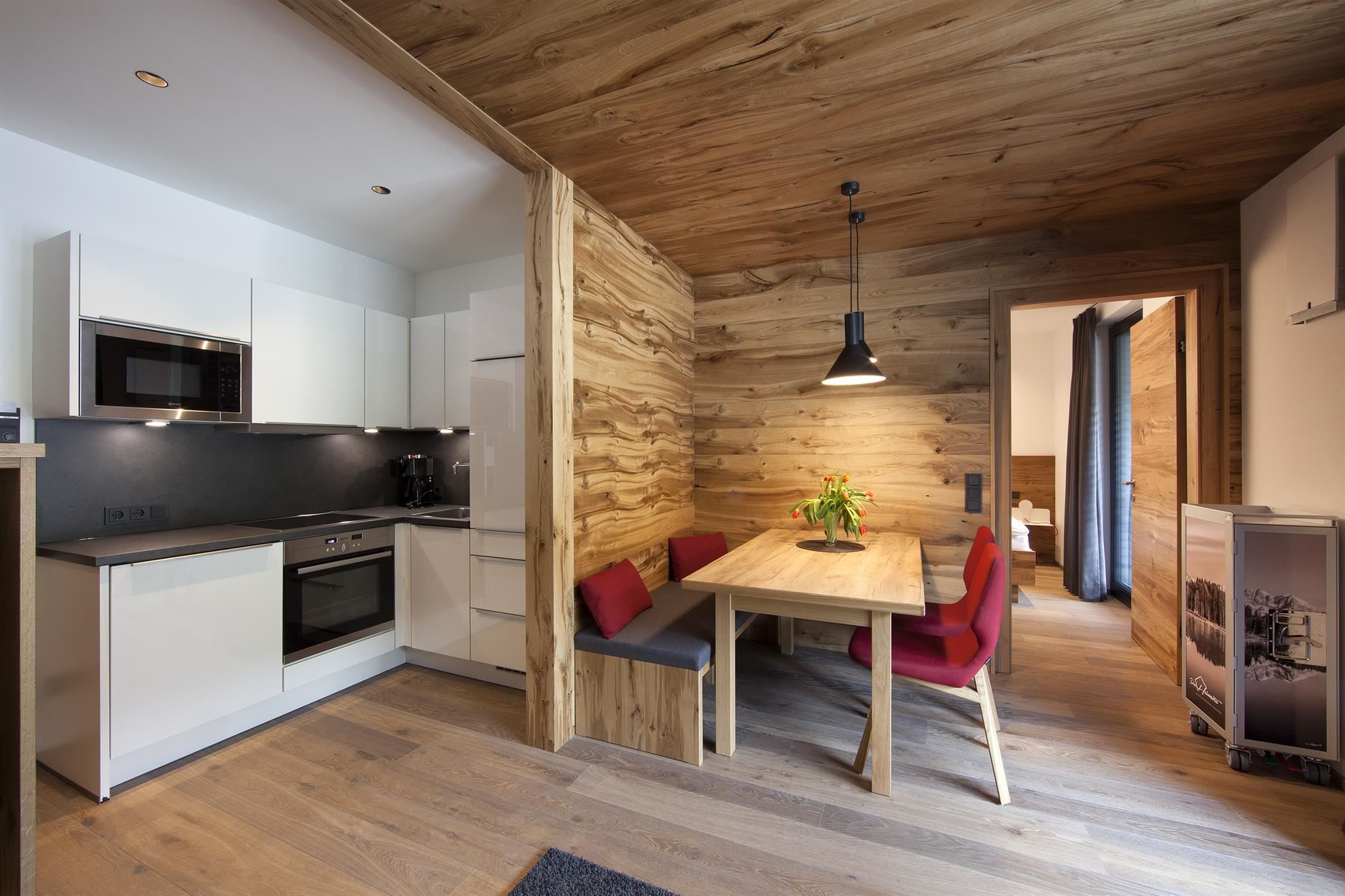 Appartement in high-end basic design met natuurlijke, lichte materialen, alpiene flair en echte gezelligheid. Gratis highspeed wifi, eigen ski- en bikeberging in de kelder, privé parkeergarageplaats naar beschikbaarheid. Indien gewenst ontbijtservice.