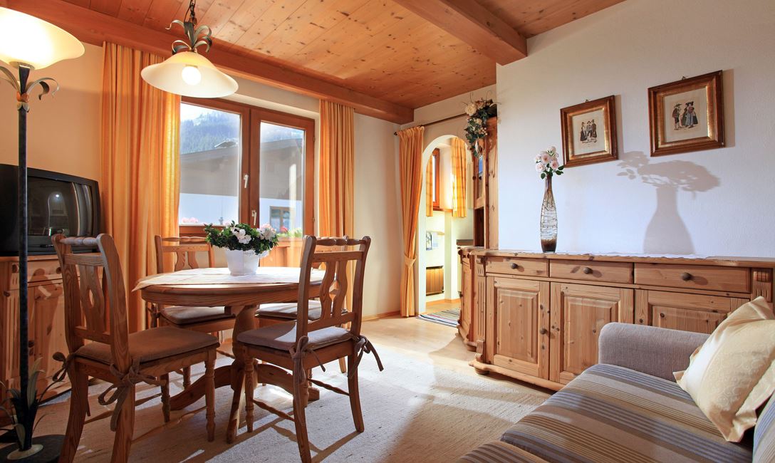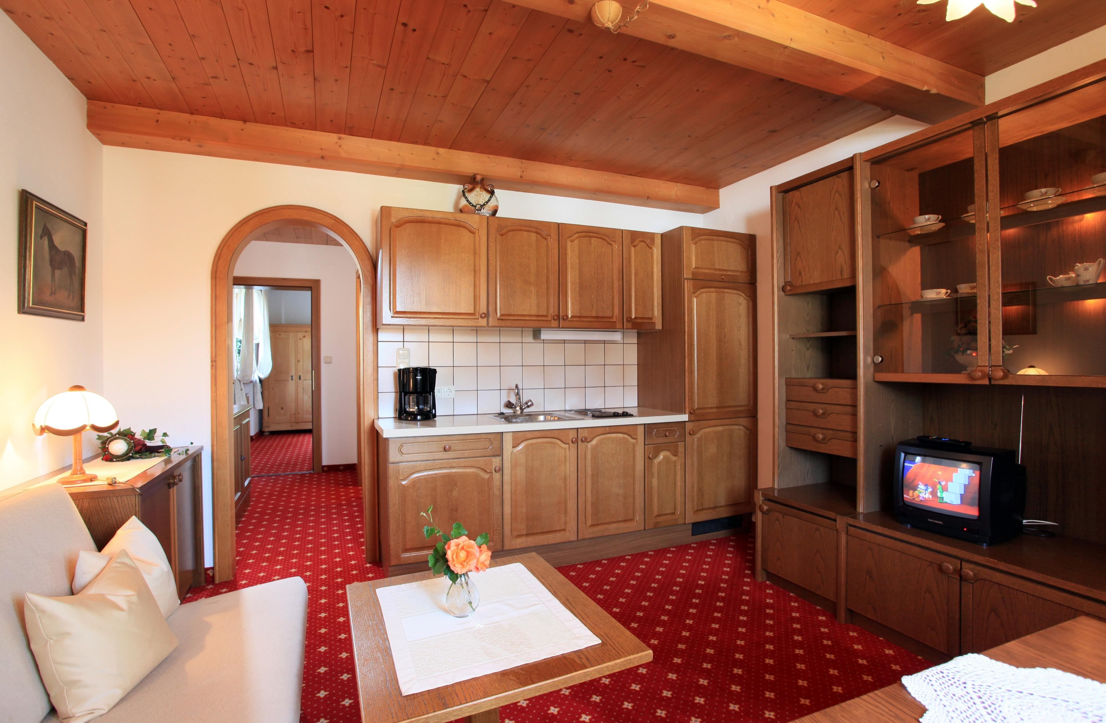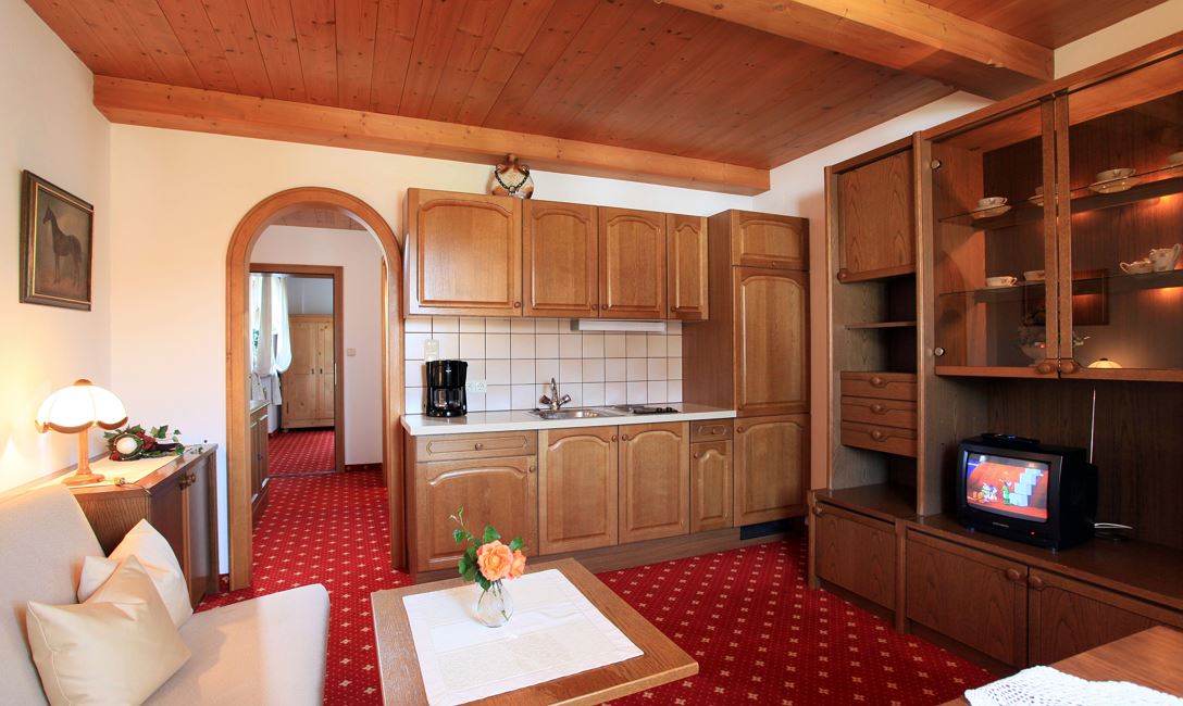Appartement A3 is ca. 48 m². Woon-slaapkamer (comfortabele 2-persoons slaapbank), slaapkamer, eethoek, compleet ingerichte keuken, 2 kookplaten, espressomachine, waterkoker, deel, badkamer met douche/wc, flatscreen-tv, balkon-terras met uitzicht over de omringende bergwereld. Gratis w-lan is natuurlijk inclusief. Naar wens kan een extra bed (slaapbank) in de slaapkamer geplaatst worden, zodat uw kind bij u op de kamer kan slapen. Kinderstoel en babybed aanwezig.