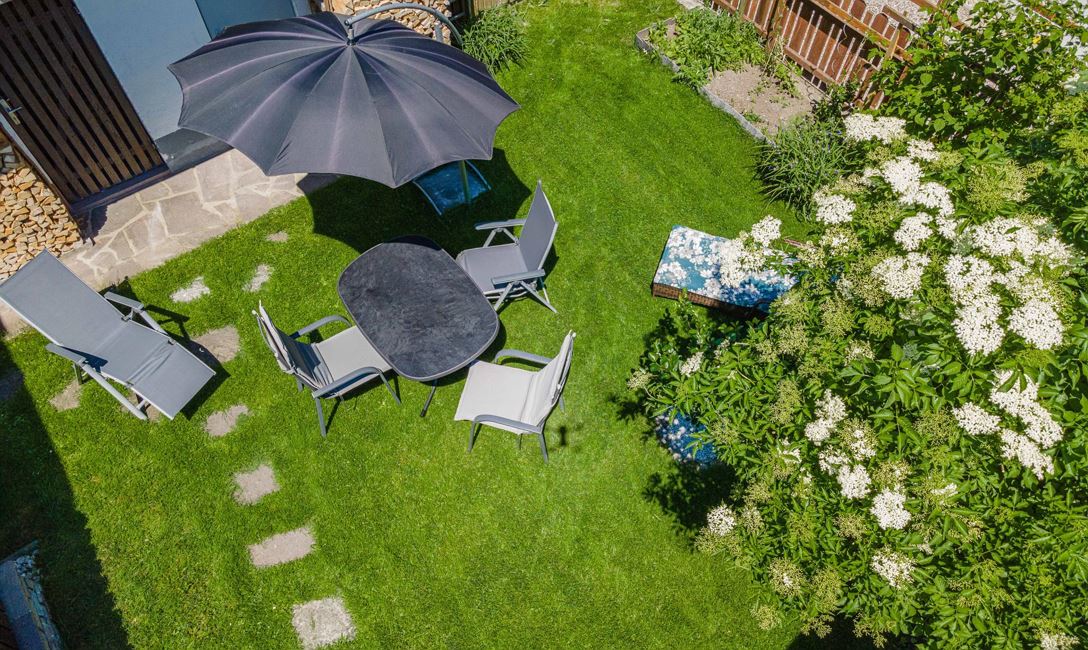 Aan de achterkant van het huis kunt u in de op het zuiden gelegen tuin genieten van de Oostenrijkse zon. Terwijl de kinderen ongestoord in de tuin spelen, kunt u in de verte de koeienbellen horen.