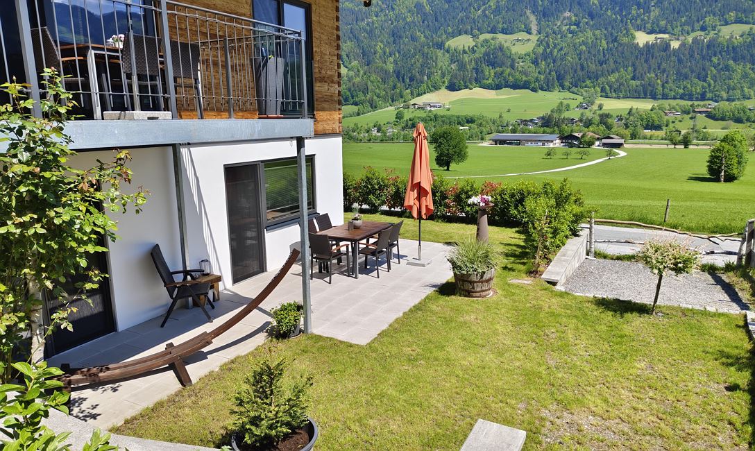Het met tafel, stoelen, zonnescherm en hangmat uitgeruste terras met kleine tuin, zorgt er met zijn uitzicht op de Wilde Kaiser niet alleen voor dat u de tijd graag buiten door wilt brengen, maar nodigt ook uit tot het maken van meerdere mooie en leuke vakantiefoto´s.