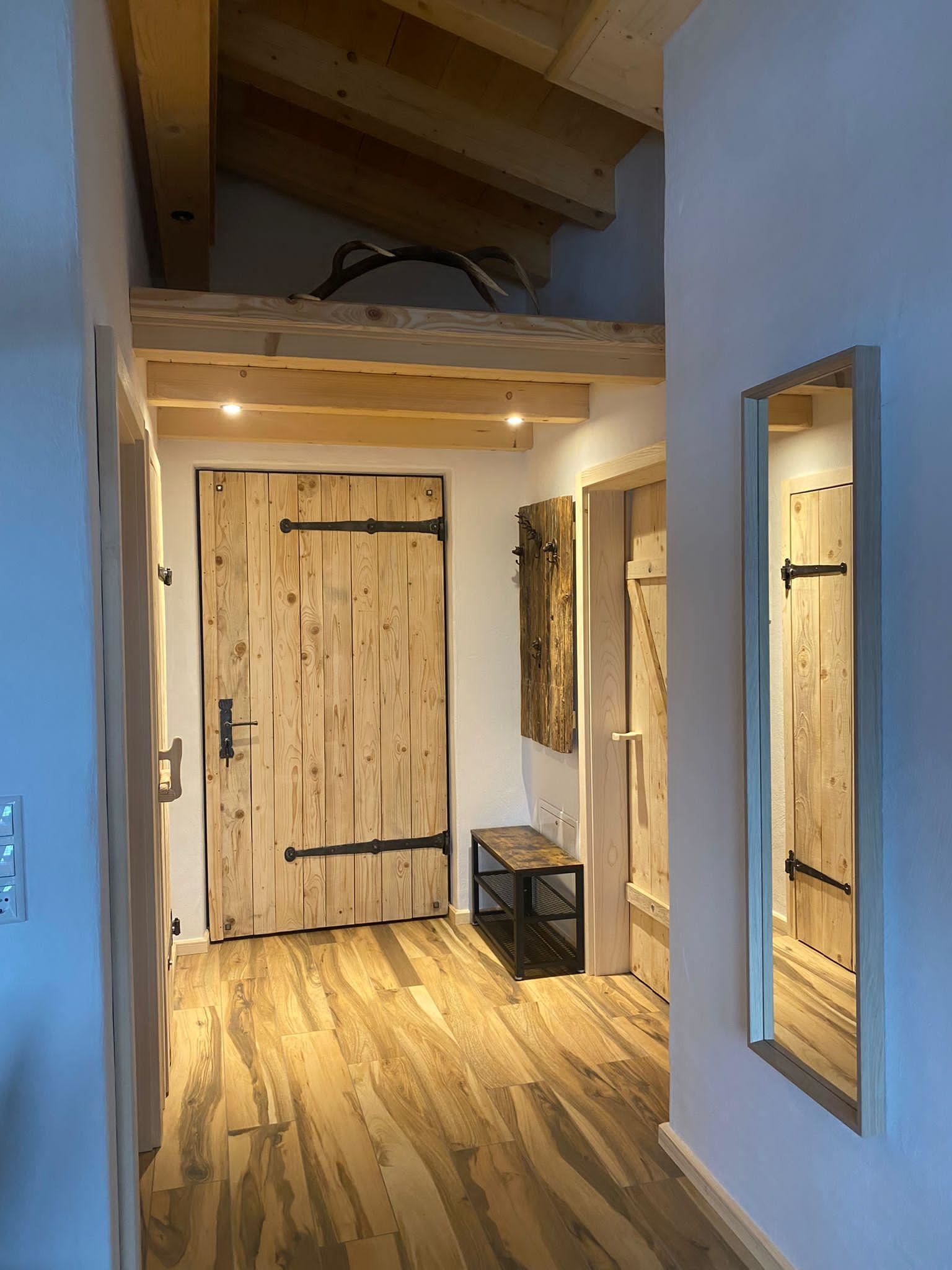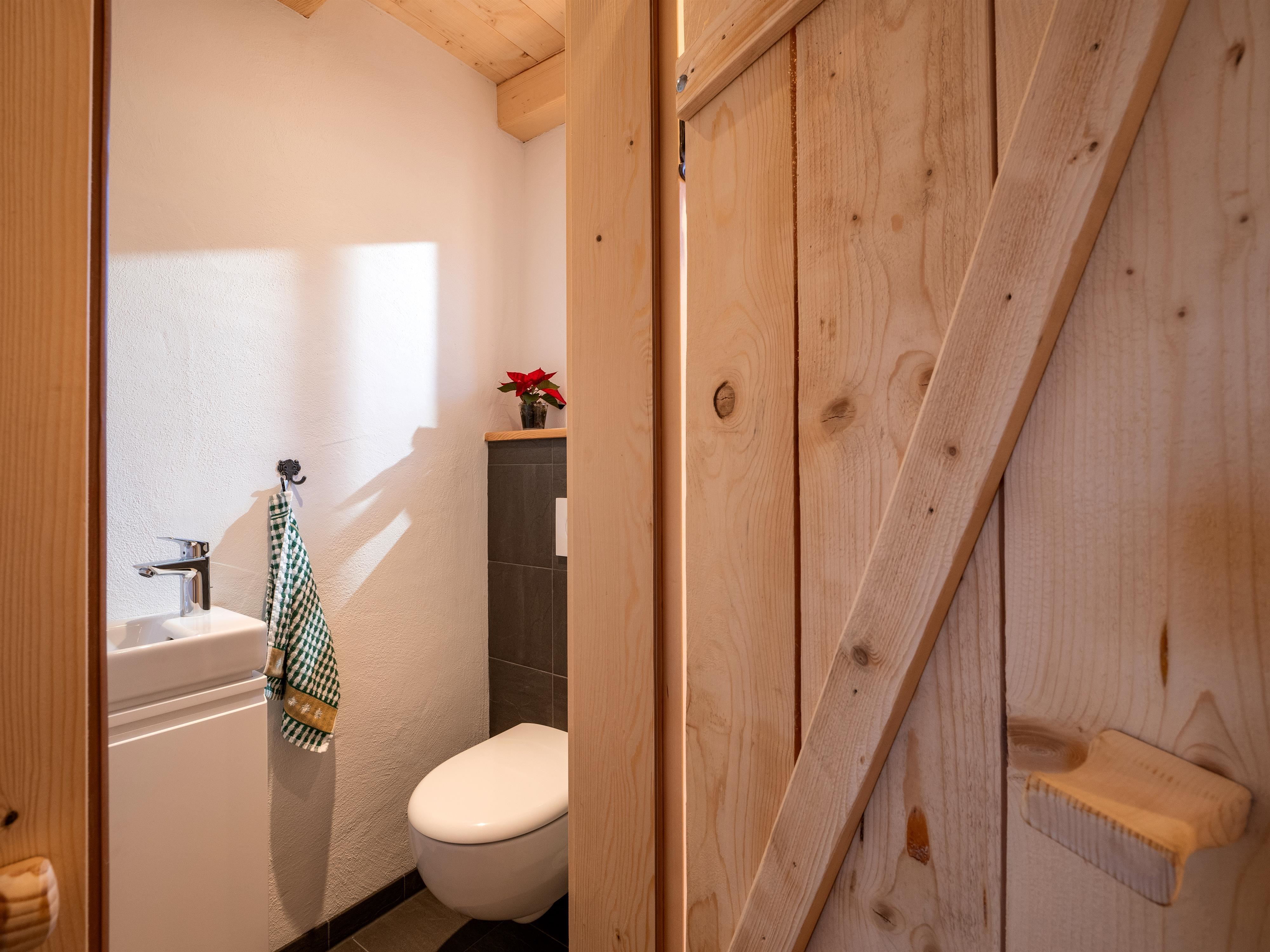 Het 63m² grote bijhuis, onze "Almhütte", bestaat uit een grote badkamer, twee toiletten, twee aparte slaapkamers, een ruime woon-/eetkamer en een keuken met een grote flatscreen-tv. Slaapkamer 1 heeft een groot tweepersoonsbed, slaapkamer 2 heeft een bed van 140 cm en een stapelbed erboven van 90x200 cm, en in de woonkamer is er een slaapbank voor maximaal 2 kinderen. In beide slaapkamers ligt een houten vloer en in de andere kamers vindt u een vloertegel in parketlook. In het hele huis is er vloerverwarming. Op het terras en het balkon buiten is er een barbecue beschikbaar.