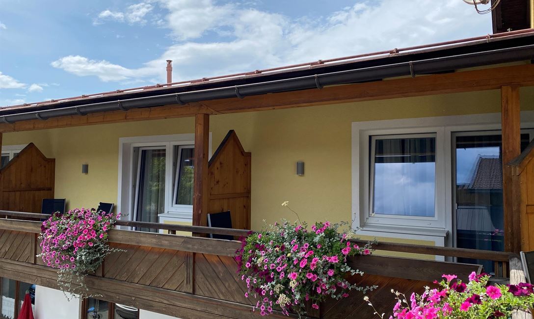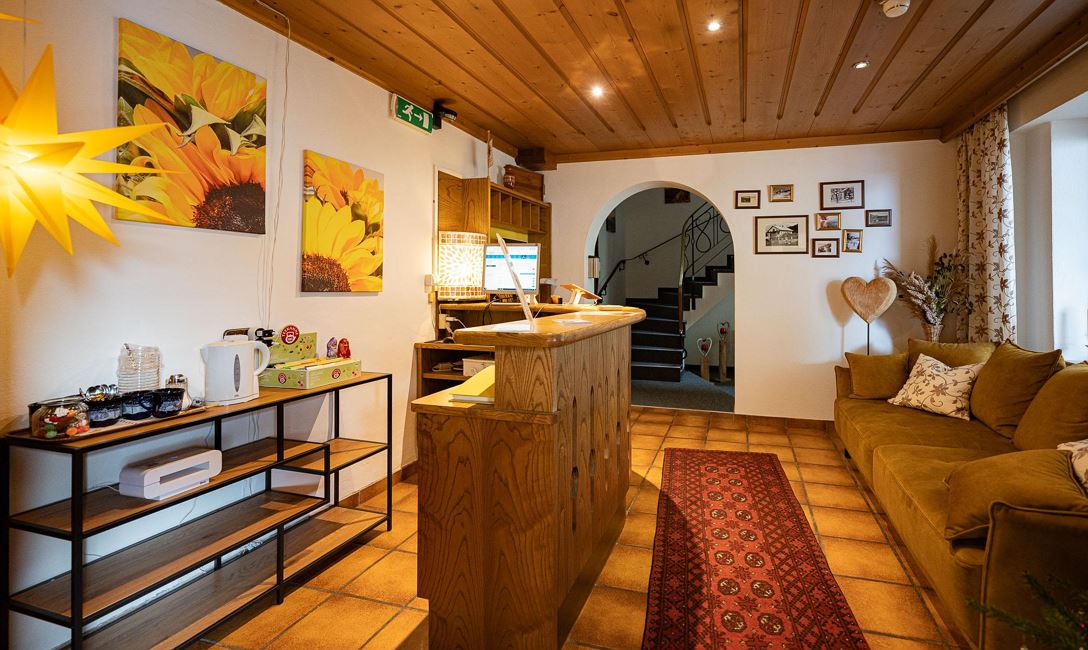Populaire en goed uitgeruste pension, 43 bedden/18 kamers. Ontbijtruimte (ontbijtbuffet), aparte lounge en gratis thee/koffiebar bij de receptie. Grote parkeerplaats en centrale ligging. Het dorpscentrum ligt op ongeveer 7 minuten lopen! Halte voor de gratis regiotrein direct voor het huis ...