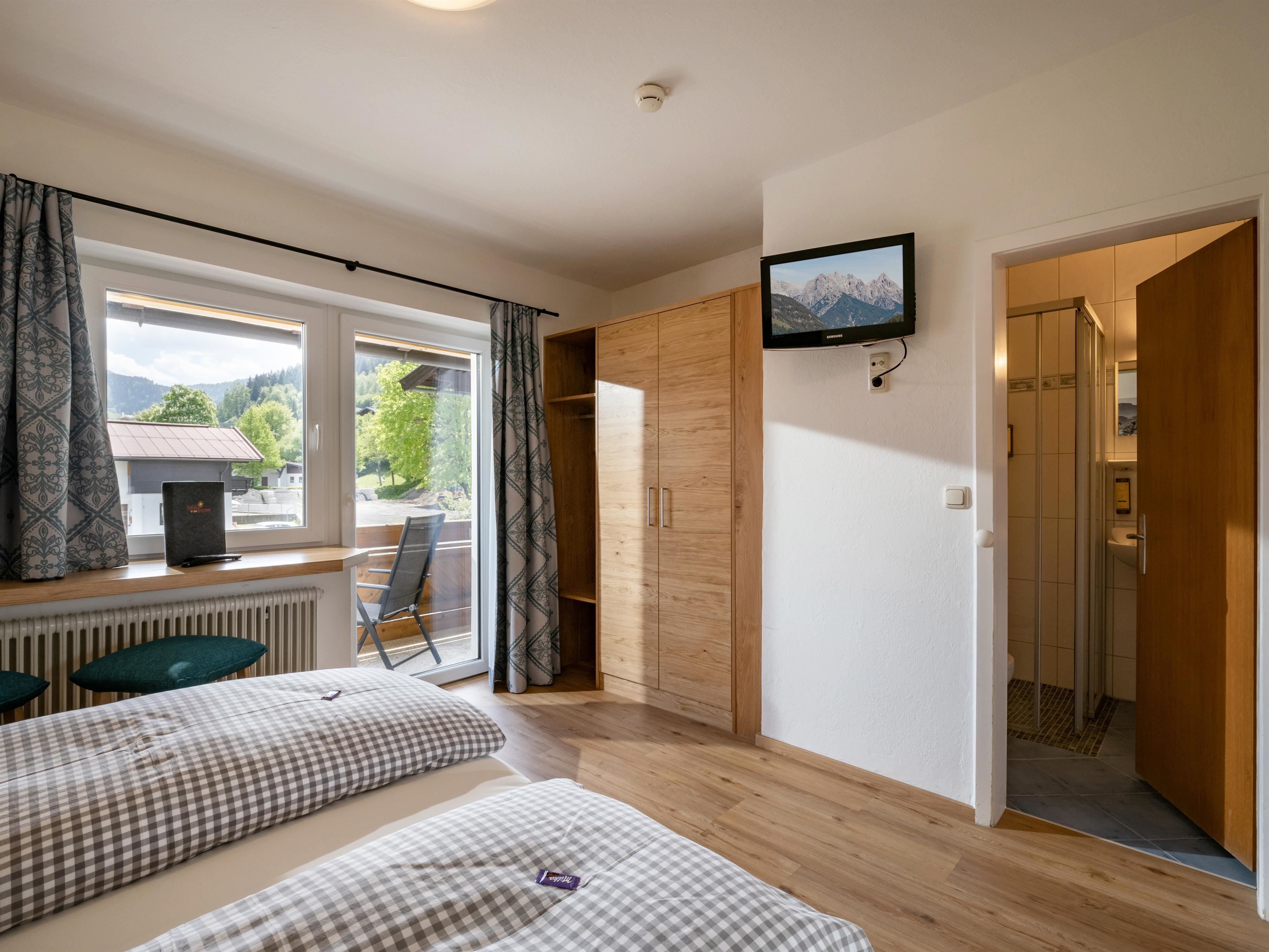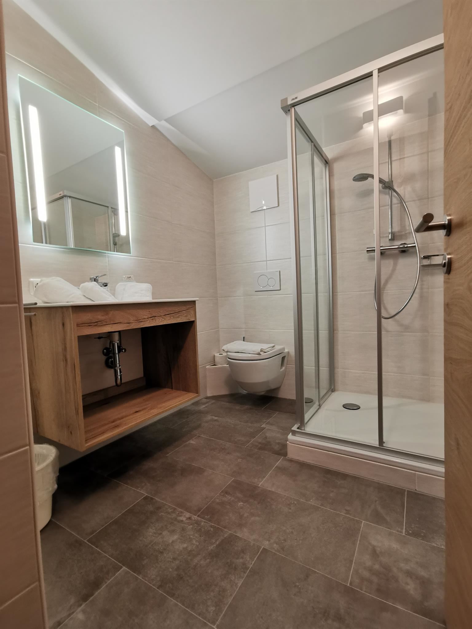 Driepersoonskamer, douche, WC, zuid