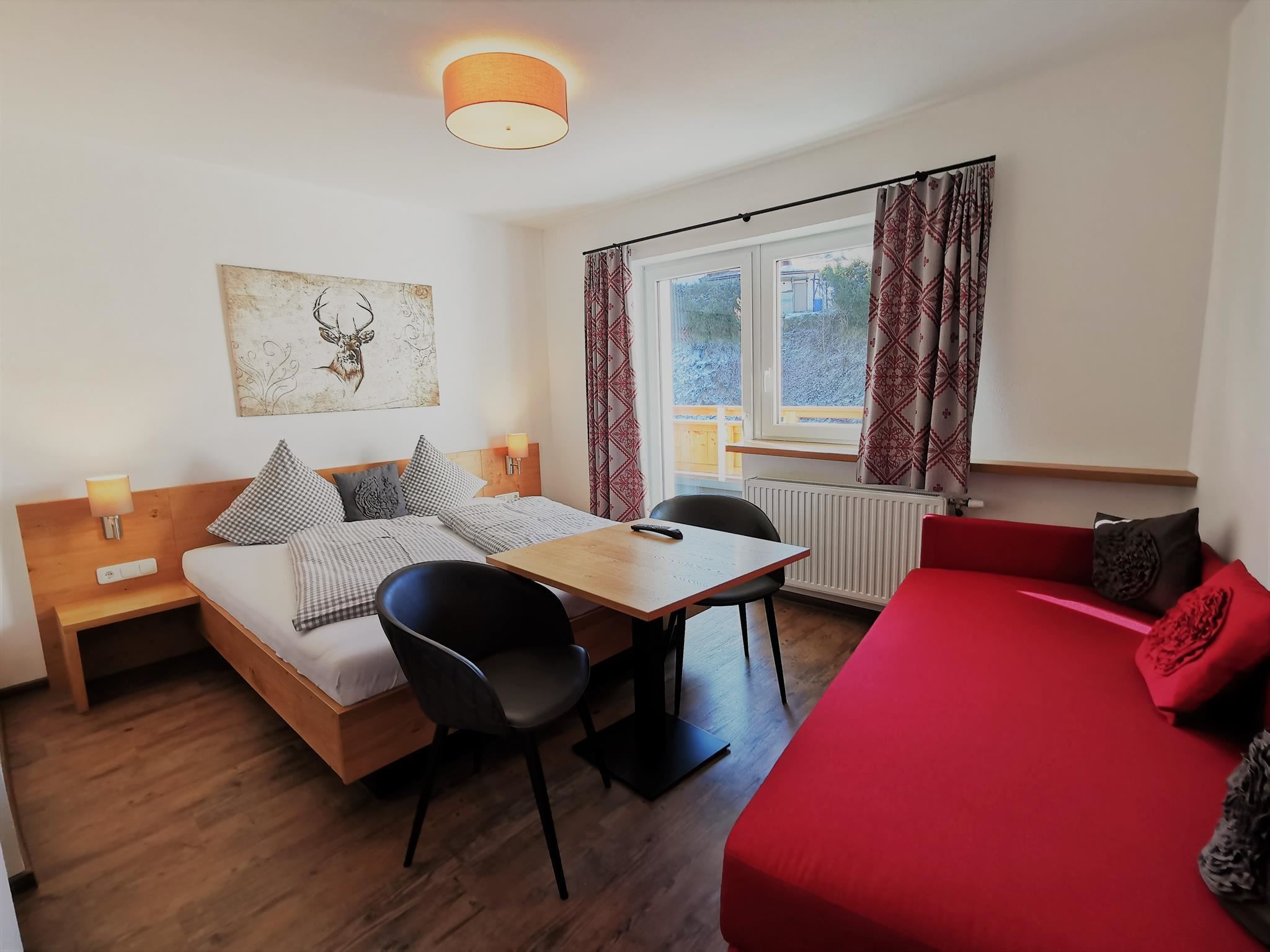 Volledig vernieuwde studio met een tweepersoonsbed en een slaapbank voor twee extra personen op de 2e verdieping met een ruime balkon aan de zuidzijde - KabelTV en gratis WiFi zijn ook beschikbaar